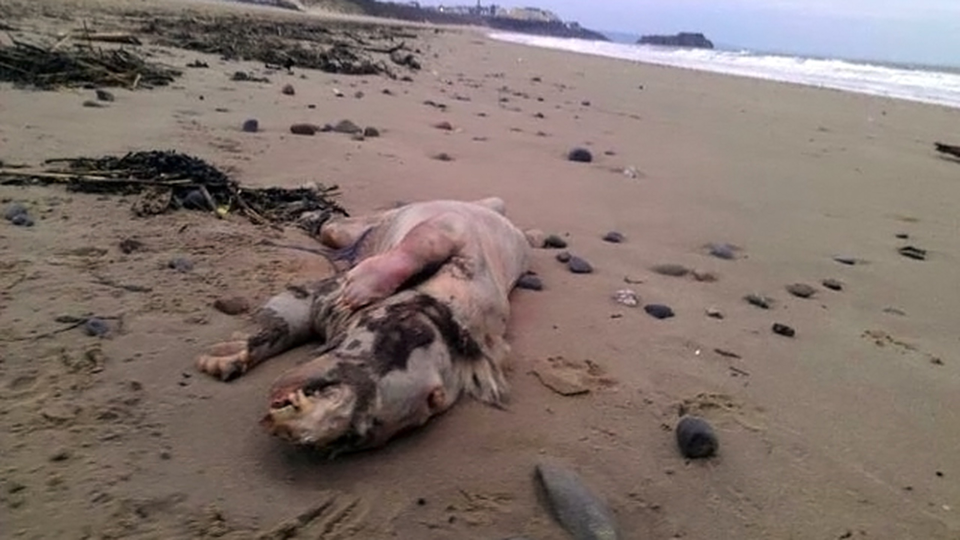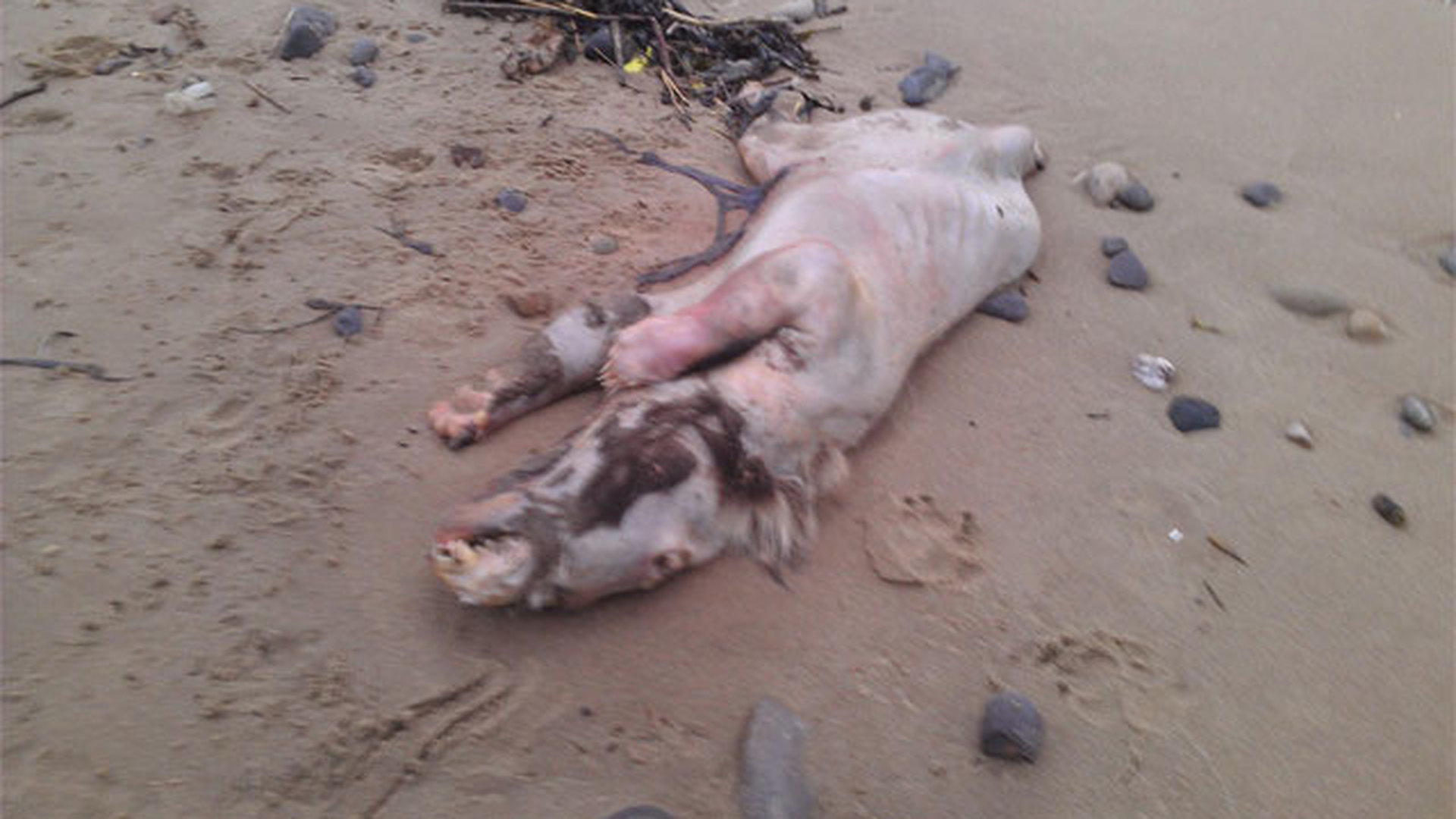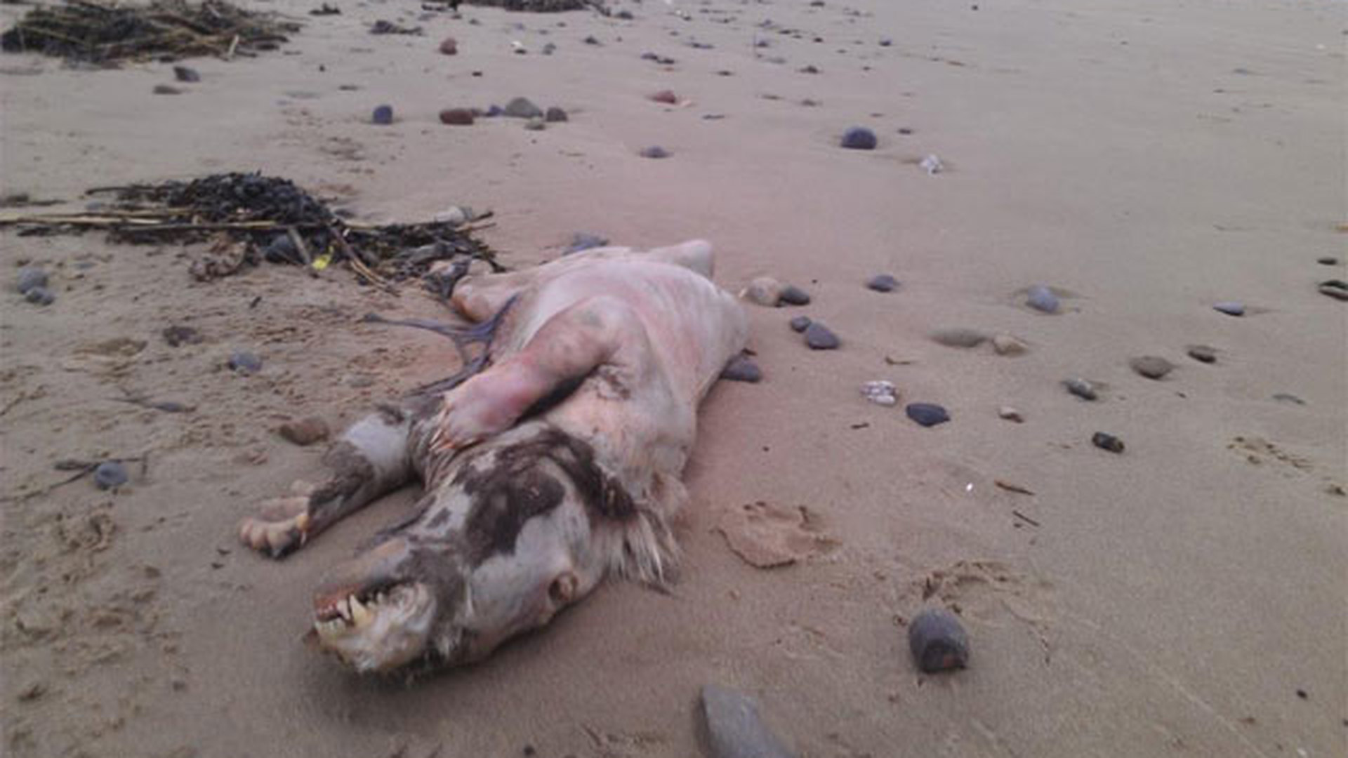 На британский берег выбросило жуткое безволосое существо. Фото